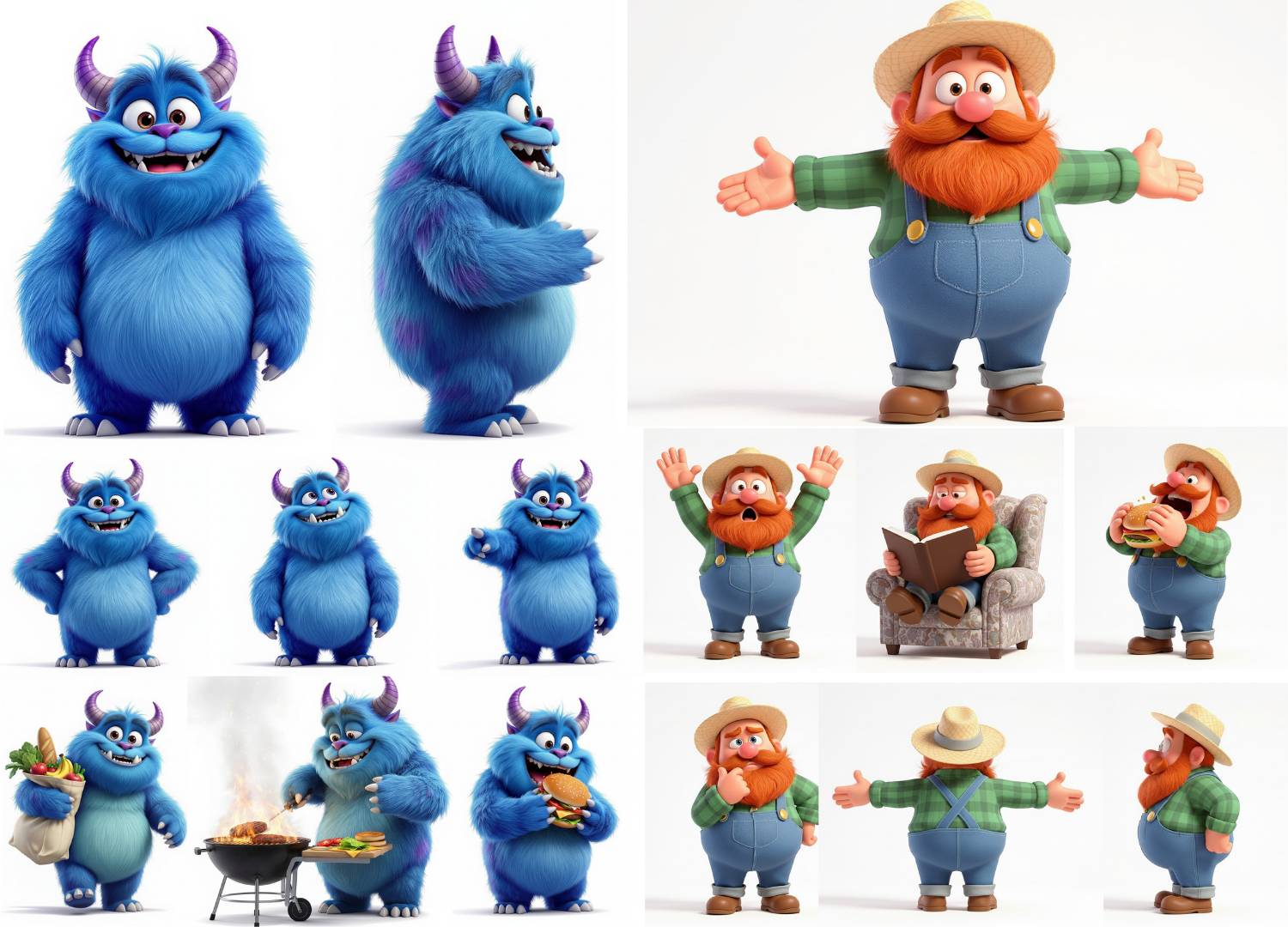 The magic: Each example is optimized for cartoon generation, not photography. No more fighting with prompts that work for realistic images but fail spectacularly with cartoon characters. Perfect results: Generate exactly the poses you envision on your first attempt. Step 3: Build Your Complete Story UniverseHere's where it all comes together—creating multiple scenes becomes as simple as selecting from a menu. From your reference character, create: